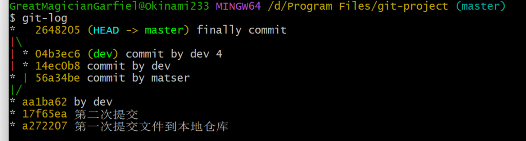 - git merge “分支名” 合并分支,一般是合并其他分支到master分支